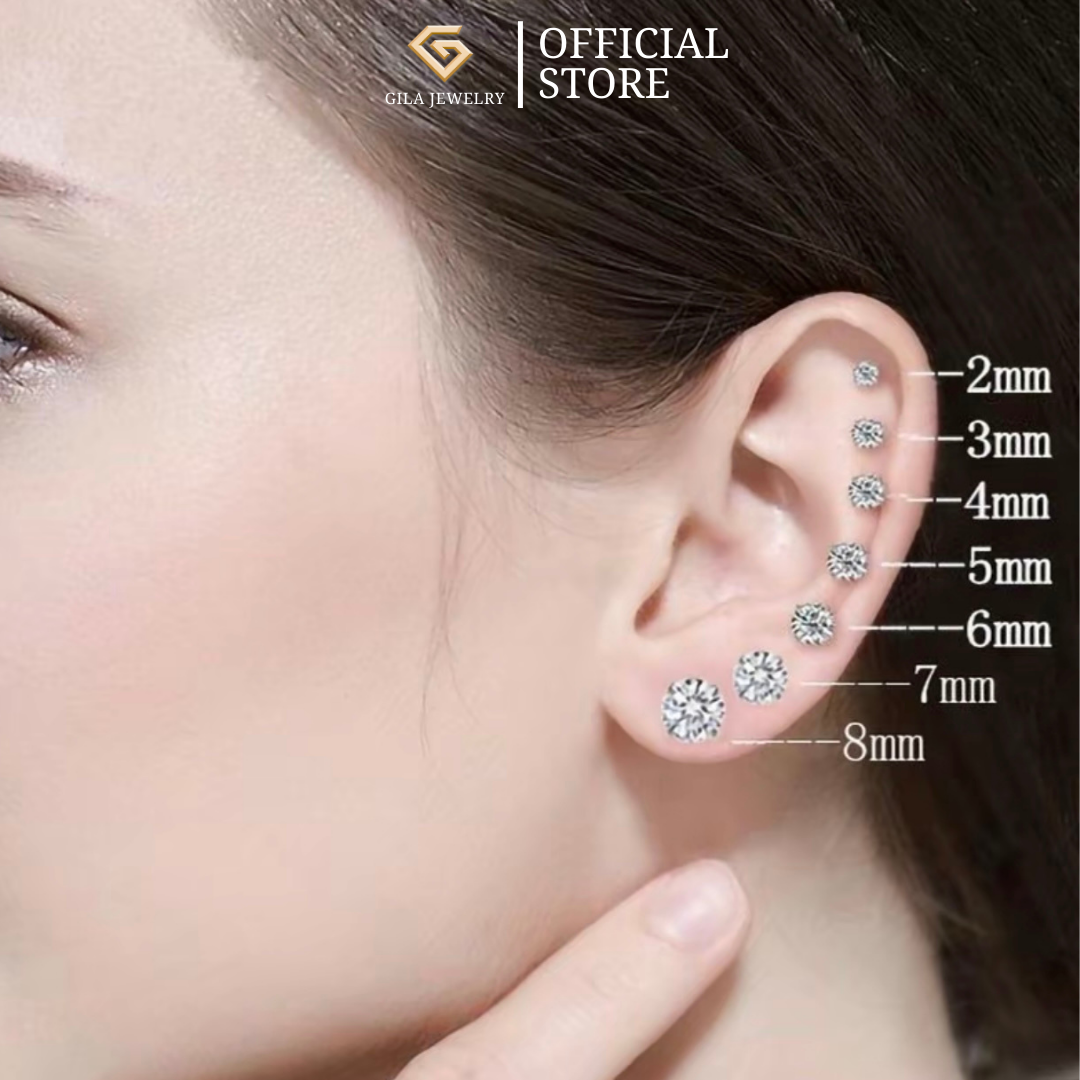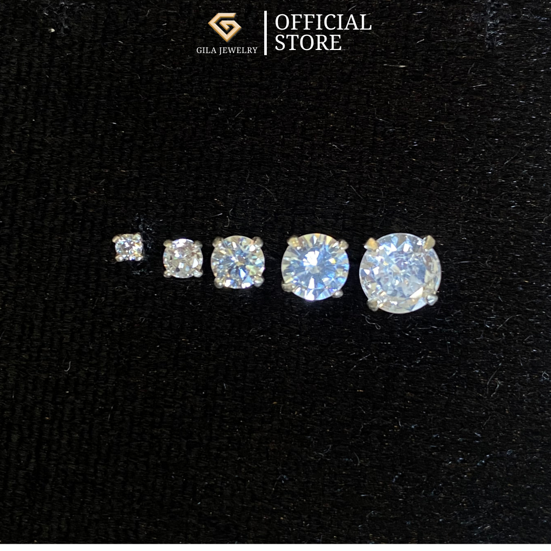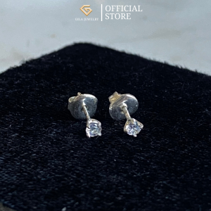 Bông tai bạc Ý S925 đính đá Cubic Zirconia lấp lánh Chui Vặn/ Chui Đẩy